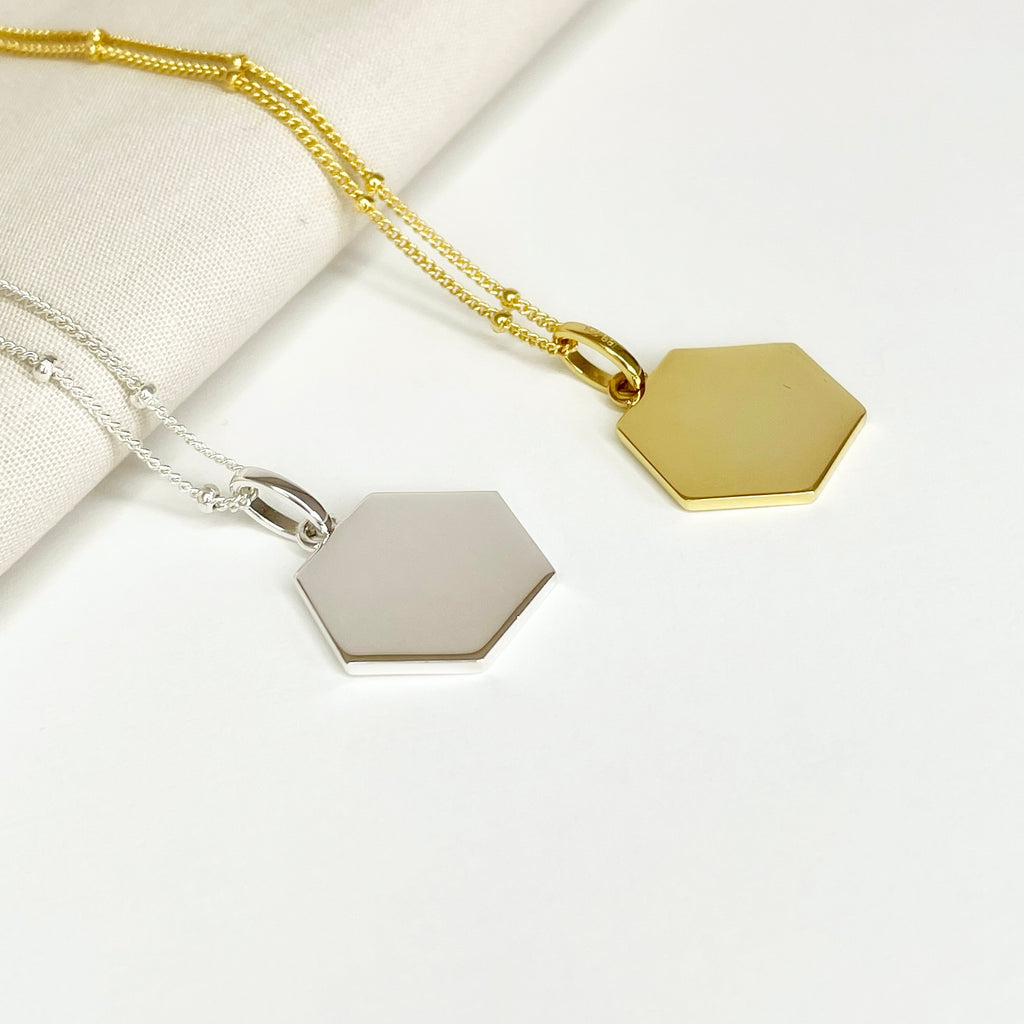 Whether you leave it plain or add your own engraving, our hex pendant will be your go-to, wear with everything necklace.