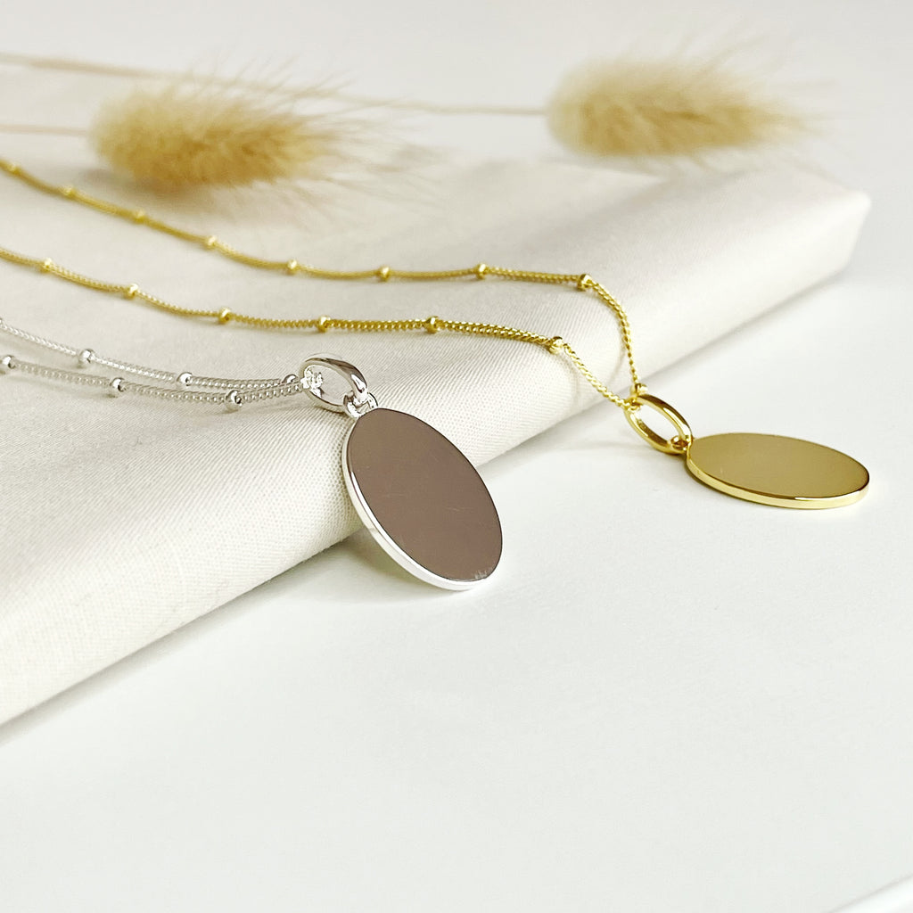 Whether you leave it plain or add your own engraving, our oval tag pendant will be your go-to, wear with everything necklace.