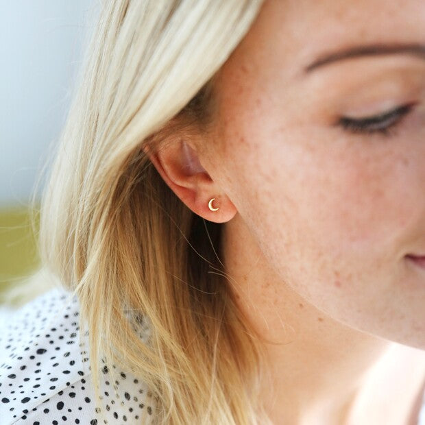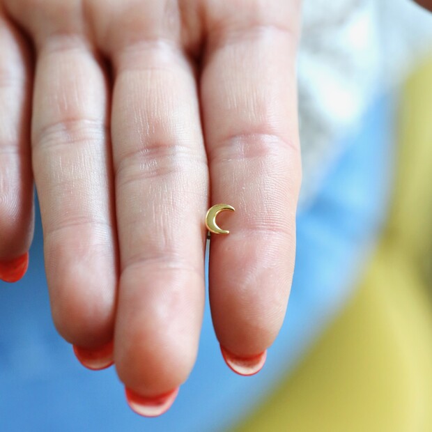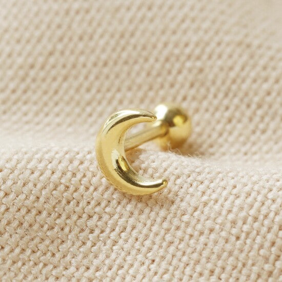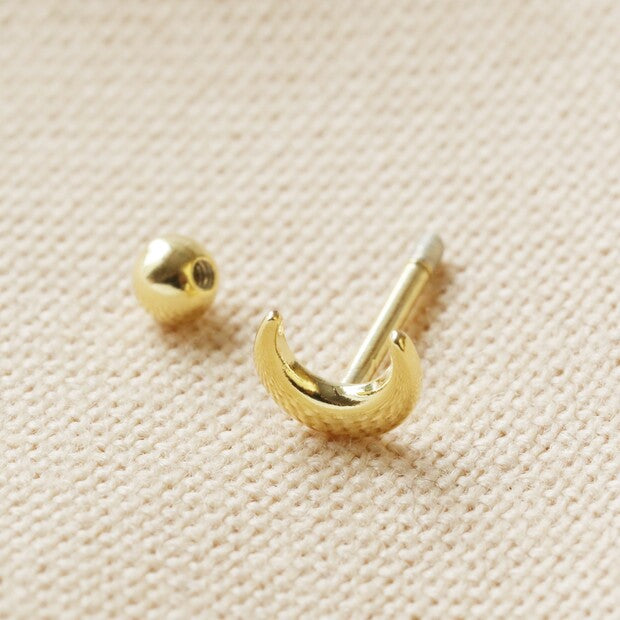With a sweet crescent moon design that is ready to be worn alone or paired with other hoops and studs, this barbell earring is the ideal choice for comfortable wearing in a cartilage piercing. Made from hypoallergenic sterling silver with a 14ct gold plated finish, this polished earring will add a little extra detailing to your curated jewellery look.