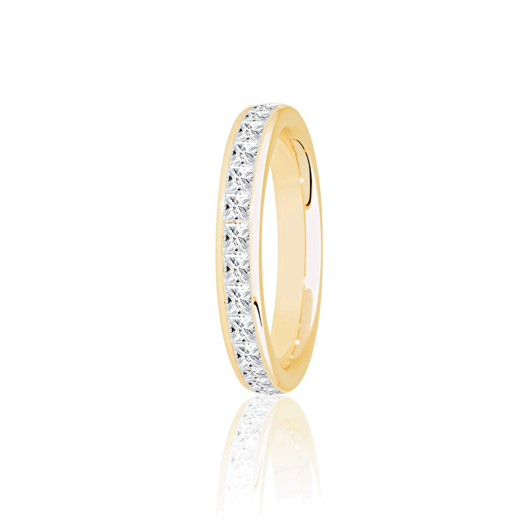 - The sparkling princess cut diamonds are set low into the band for a smooth, comfortable fit